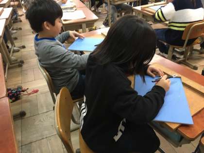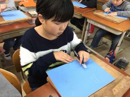 出来上がりを想像しながら、彫ったところが白くなる・・・。イメージを持って完成させられるかな!?