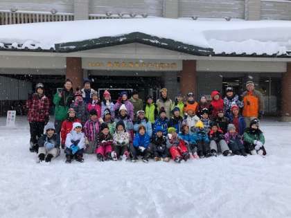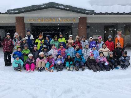 クラスごとに、ハイチーズ!!これから、クロスカントリーとスノーシューグループに分かれて活動します!