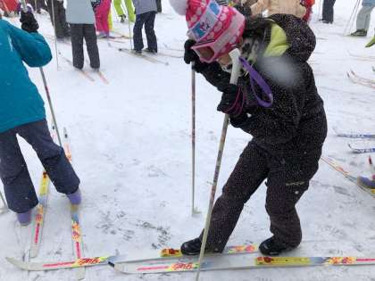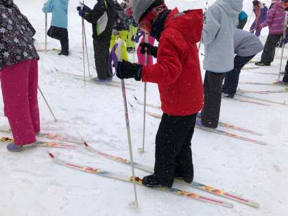 クロスカントリーグループ!初めてのスキー!!板をつけるのも、一苦労です!!