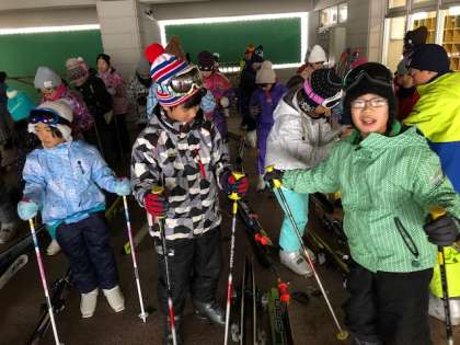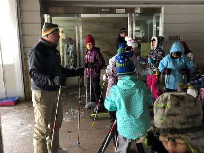 校長先生から、アルペンスキーの基本を教えてもらっています!