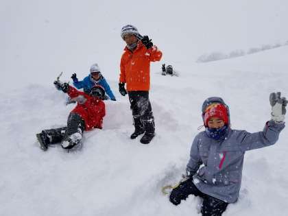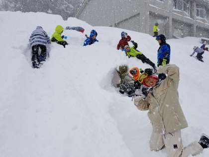 少し雪が降っていますが、雪で遊んでいると体はほかほかです。