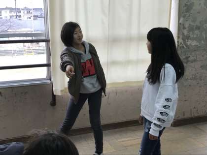 国語では伝統文化のひとつ「狂言」の魅力を味わう学習をしています。狂言の中でも有名な「柿山伏」を実際に演じてみます。いよいよ練習開始!