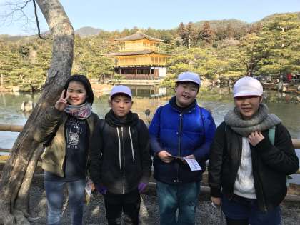 金閣寺!今日も輝いていました。手前の池は氷がはっています。なかなか寒いです。