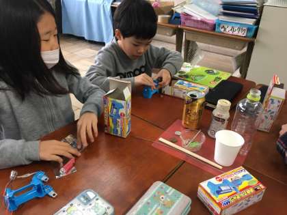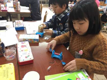 テスターを作り、どのようなものが電気を通すのかを調べました。「あれ?つくと思っていたのに!」という発見がたくさんありました。