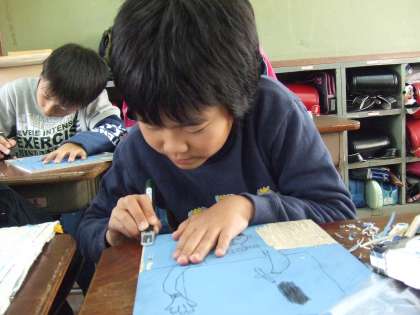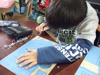 今年は,線ぼりではなく,線を残して彫るという難しい