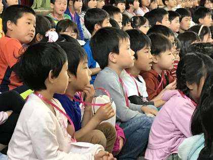 お兄さんお姉さんたちの歌声やダンス,楽しい劇に夢中です!