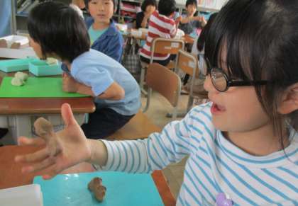 粘土のかたまりをにぎってみたら,面白い形になったよ。