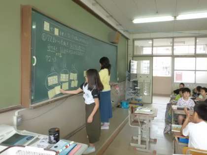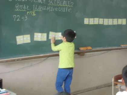 72÷3と68÷3の計算の仕方について話し合いました。10の束をばらして考えると3つに分けることができました!