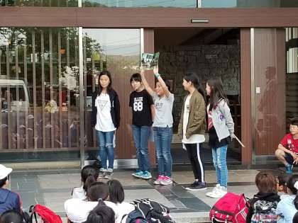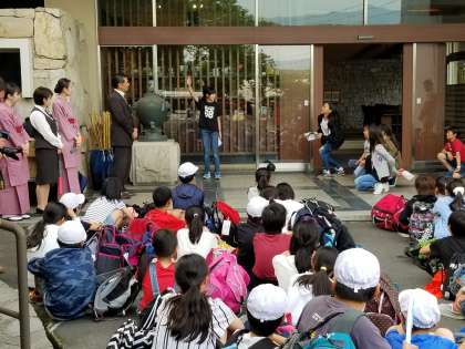 入館式で,旅館の方々を笑顔にさせる!さすがすね!