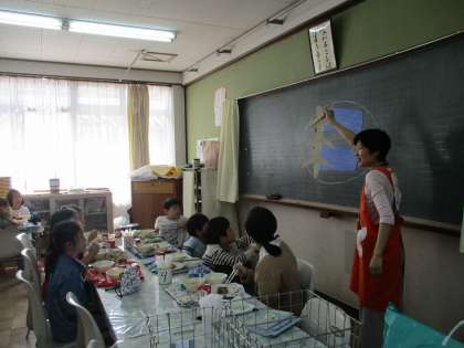 ランチルームで給食を食べました。