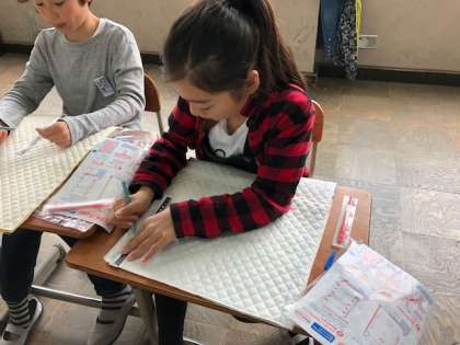 まずは布に印をつけて,まち針を指していきます!今週末に完成予定です!