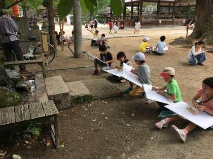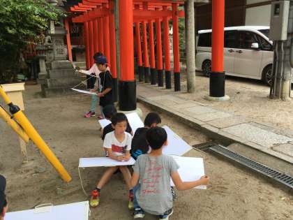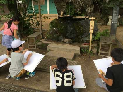 鳥居や本殿や馬の像,公園などをどのように描くのかが,これから楽しみですね☆馬の写真が入った自販機を描こうか迷っている子もいました。