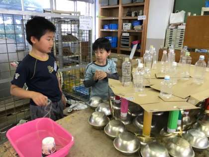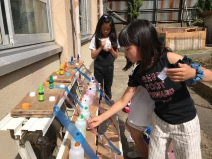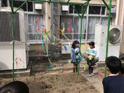 色にこだわる子,風を感じる子,音を楽しむ子,いろんな姿が見られます。一人一人の感性があふれ出ています。