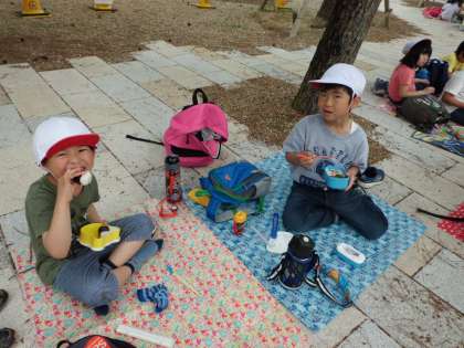 おなかペコペコの子どもたち。おいしいお弁当をぱくぱく完食しました♪