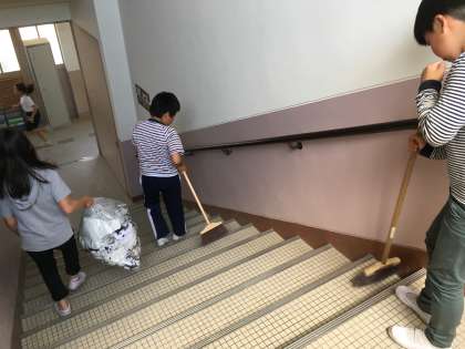 どこがよごれているか見つけて,そこをきれいにする。これがそうじ名人ですね。廊下や教室も雑巾がけしていました。黒板もピカピカでした☆