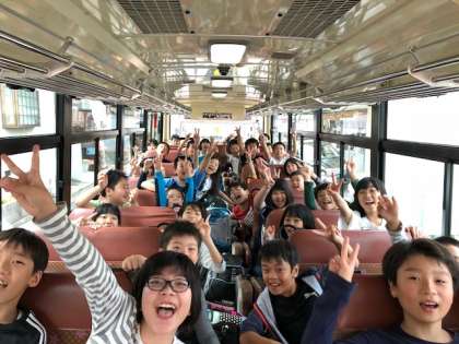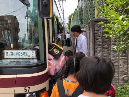 いざバスに乗り込みます!あいさつ,マナーも意識して,いざ出発!