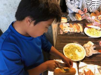 朝食は自分たちで作ります!パックドック!うまくできるかな?