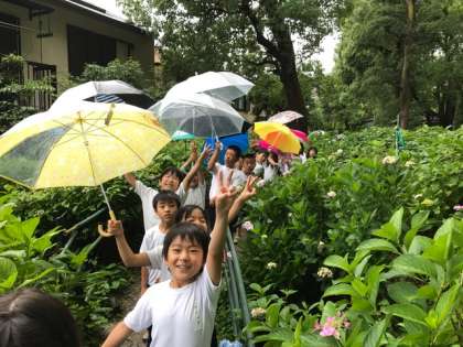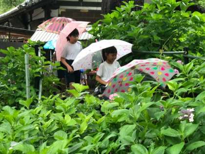 今年も雨のあじさい祭り。でも,アジサイの花は,雨が合います。「このあじさいは酸性,こちらはアルカリ性・・・・。白は何性?」こんな声も聞こえてきました。