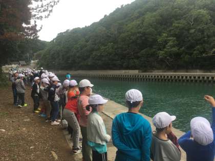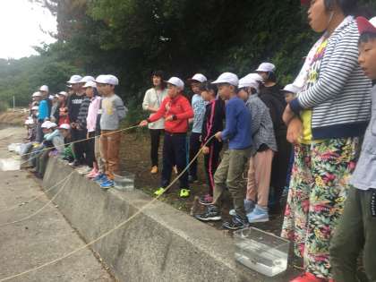 昨日仕掛けたかご漁のかごを引き揚げに行きます。