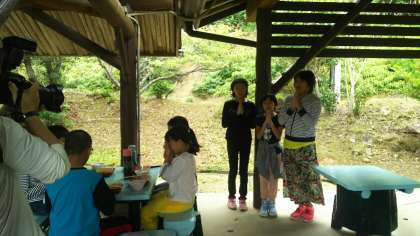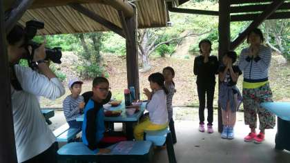 2日目の昼ごはんです!お昼からは野外炊事場ではなく東屋で食べます!活動したあとのご飯はおいしいです!