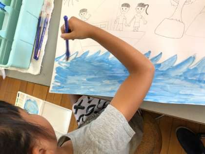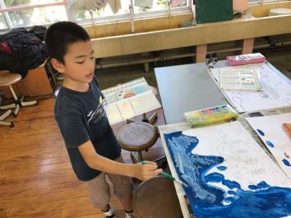 今回は「航海するダーウィン」の場面を選んでいる児童が多いのですが,海の表現もやっぱり多種多様です。