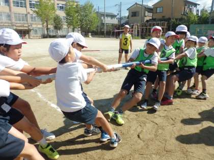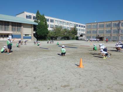 体育の学習で棒引きをしています。試合や準備,審判などすべての運営を自分たちで行っています。審判の声かけなども大きな声で,タイミングよくできるようになってきました。