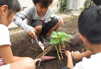 生活科で育ててきたお芋を収穫しました。