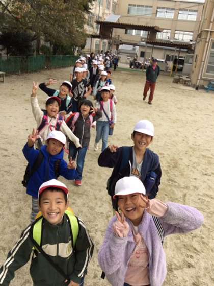 絶好の遠足日和。やる気満々で出発しました。けがなく無事終えられますように・・・。