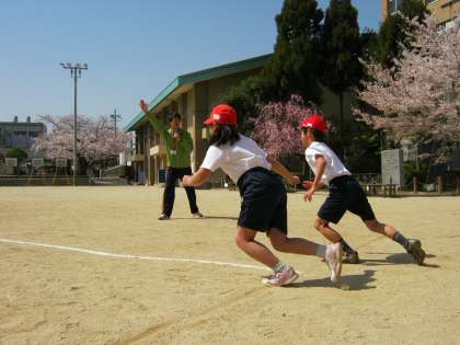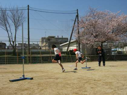 春の暖かい日差しがふりそそぐ中,今日は学年で50m走のタイムをはかりました。