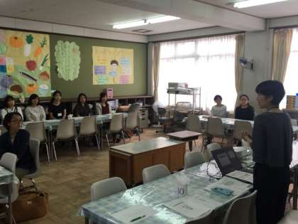 給食試食会を開催しました。普段は見ることができない給食の様子についてお話をさせていただき,実際に見ていただきました。