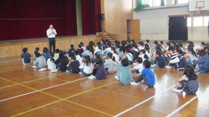 5月20日(月)の中間休みに,土曜塾の開講式がありました。