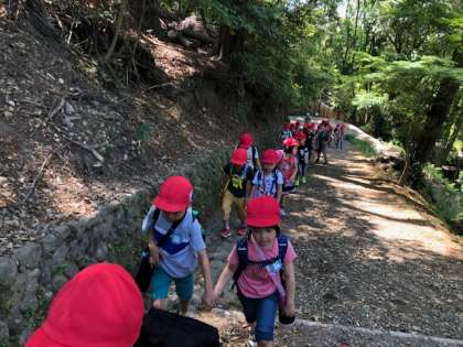 いよいよ大吉山に登ります。山の中の自然を感じながら友だちと仲良く頑張ります!
