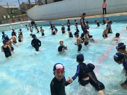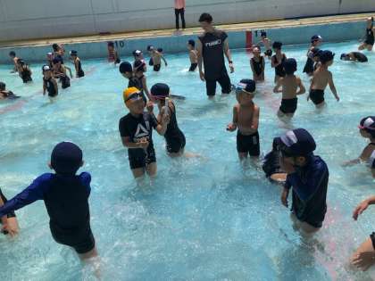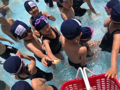 授業の最後には,「宝探し」をしました!手で探ったり,潜ったりして,たくさんのお宝を見つけます。みんなで協力すると,あっという間にお宝全部集められたね!!!