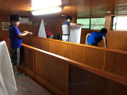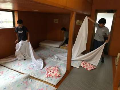 布団の準備中。