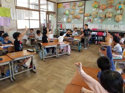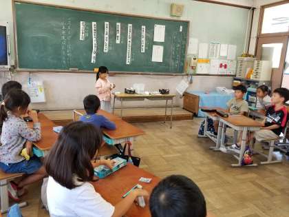 国語の授業で主語と述語について勉強しました。主語と述語に気をつけて文を考え,発表するなどしました。
