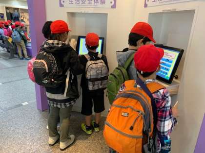 まずは広報センターで警察のクイズをといたり,110番通報の体験をしたりしながら,警察のお仕事について学びました。