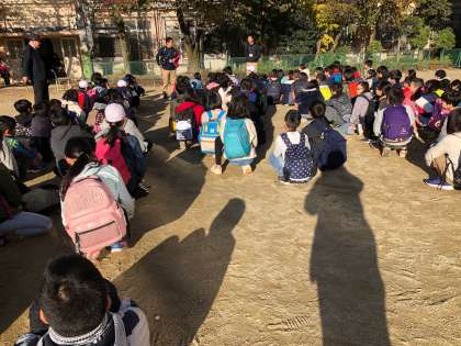 天候に恵まれました。しかし,寒い!! 社会見学へ出発!