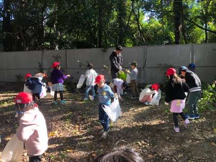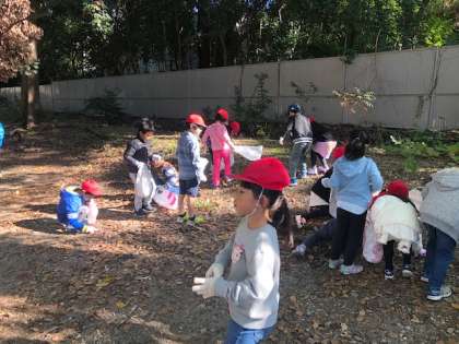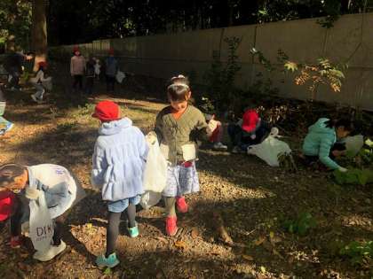 みんなであきみつけに行きました。どんぐりやはっぱ,まつぼっくりなどたくさんの秋を見つけることができました。大興奮な子どもたちは,たくさんの秋を学校に持って帰ってきました。