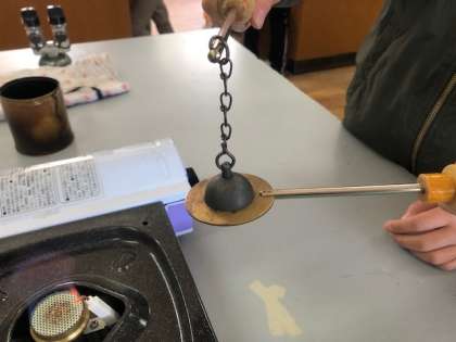 ガスバーナーを使って金属玉を温めました!