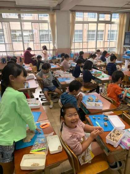 始まる前からみんなわくわくどきどき。始まってからは素晴らしい集中力でごちそうを作りました。とっても楽しい時間になりました。