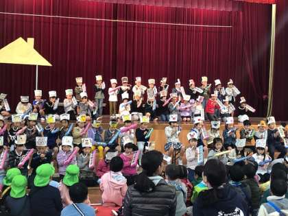 明日に本番をひかえ,今日はスペシャルゲストにお越しいただきました。近隣の幼稚園・保育園の方です。お客さんもいる本番に近い状況で,最後の練習をすることができました。