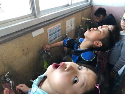 手洗い・うがい・換気をしっかり行って,インフルエンザ対策をしています。今日はとっても上手なうがい名人を見つけました。手洗いに加えて,うがいもしっかりしていこうね!