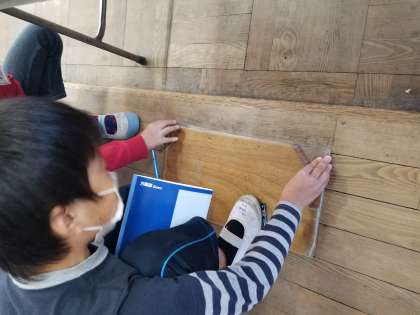 自分たちの身の回りに長方形や正方形はあるかな?教室の中を探して調べました。