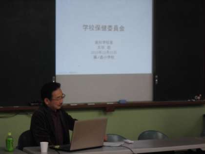 学校保健委員会を開催しました。学校歯科医の先生にお越しいただき,口腔の健康についてお話していただきました。