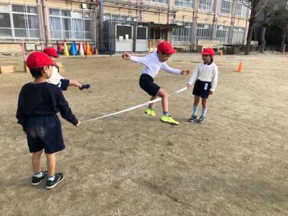 3学期最初の体育の学習は「とびくらべ」です。距離をとんだり高さをとんだり,友だちと一緒に楽しくジャンプ!