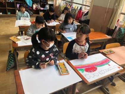 自分ののってみたいもの・いきたいところを想像して描きます。形や色を工夫して,楽しく描いていました。