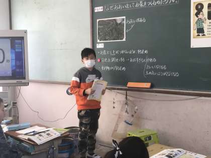 なぜ宇治市のお茶はおおいをかぶせて育てているのか…。一生懸命資料をもとに調べています。しっかりと根拠をもって発表できる姿はとてもかっこいい!