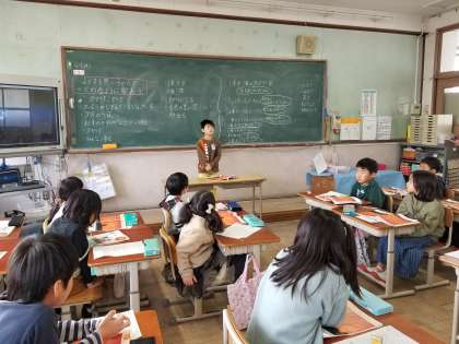 音楽の授業で「ゆうやけこやけ」の歌を歌いました。「どんな場面かな?」「どんな風に歌えばいいかな?」と皆で考えて歌いました。授業の最後には一人で歌うことに挑戦する人も・・・。ドキドキしながらも歌う姿勢や声の大きさに気をつけながら歌えていました!☆