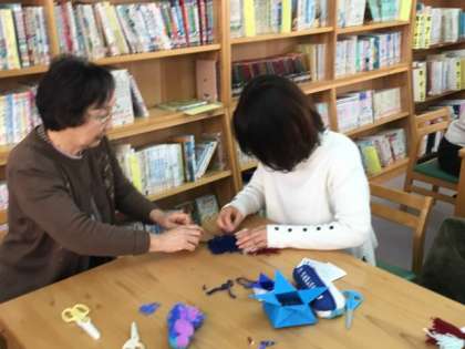 今日は土曜塾の日。クラフト部では毛糸を使った作品作り。さてどうなるかな?