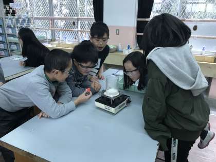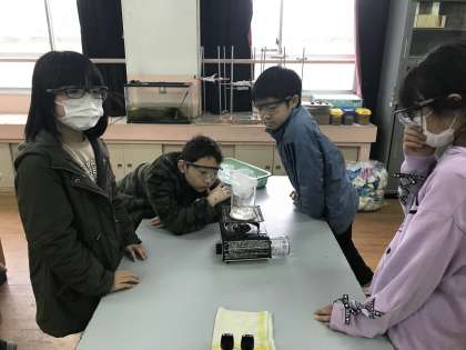水を温めて発生する水蒸気を一生懸命集めています。温めたときと温めるのをやめたときの違いを図に表して分かりやすく結果を書いていました。次は水を冷やす実験をやるぞ〜!